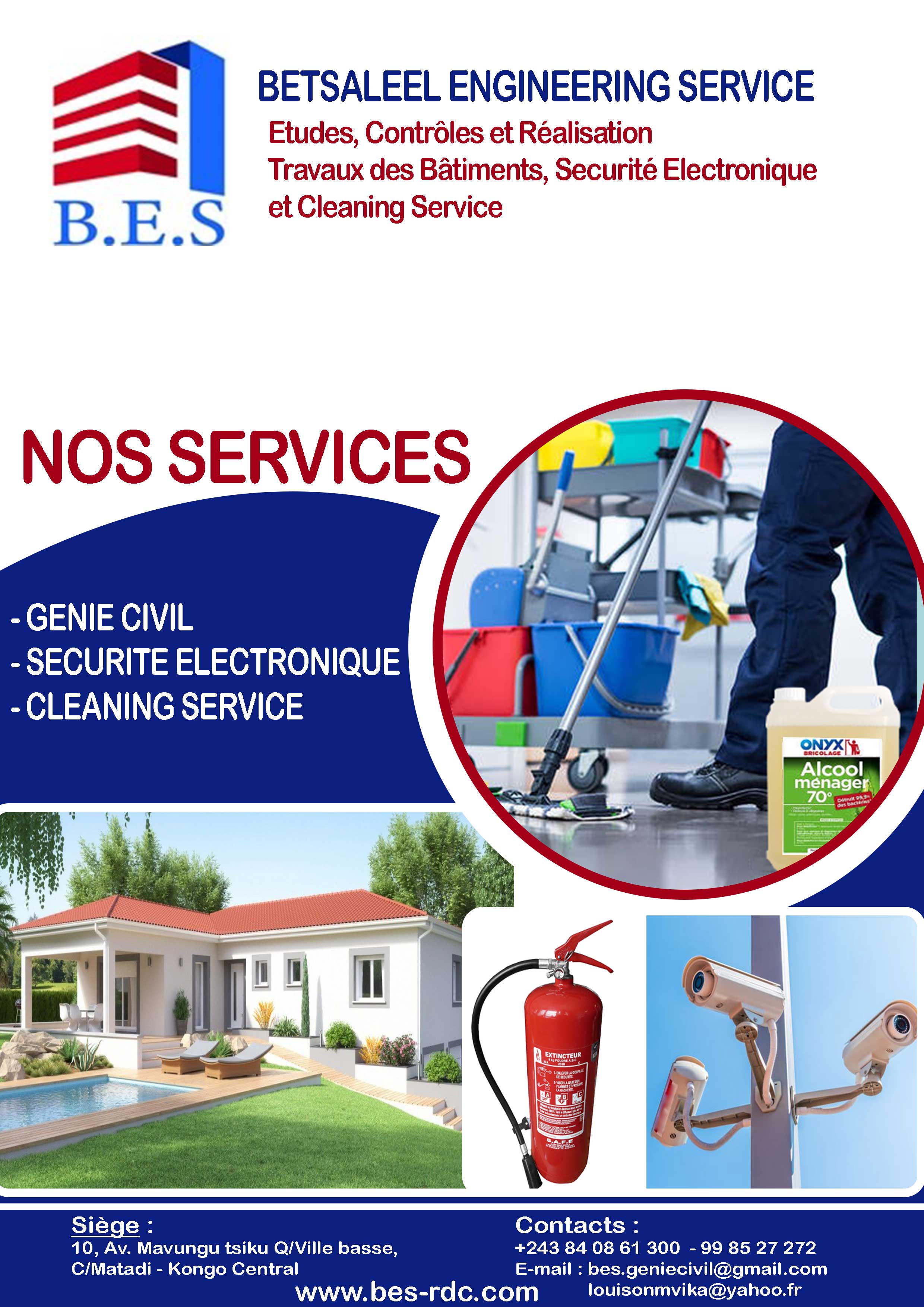 Fondée en 2014, Betsaleel Engineering Services, "B.E.S" est une entreprise de construction spécialisée en Travaux de bâtiments et génie civil, oeuvrant en République Démocratique du Congo (RD Congo). Avec comme ADN, Etudes, Contrôle et Réalisation.